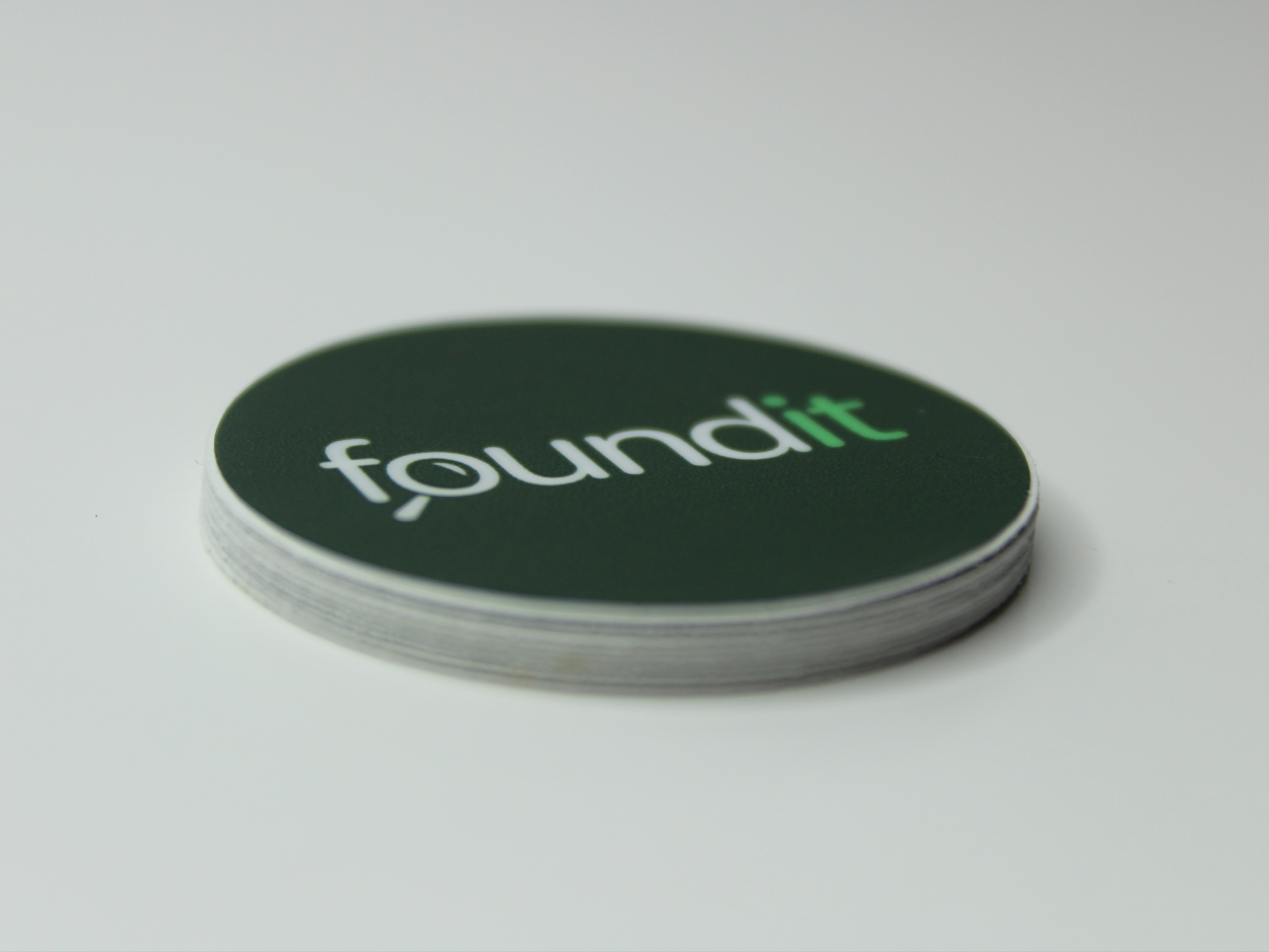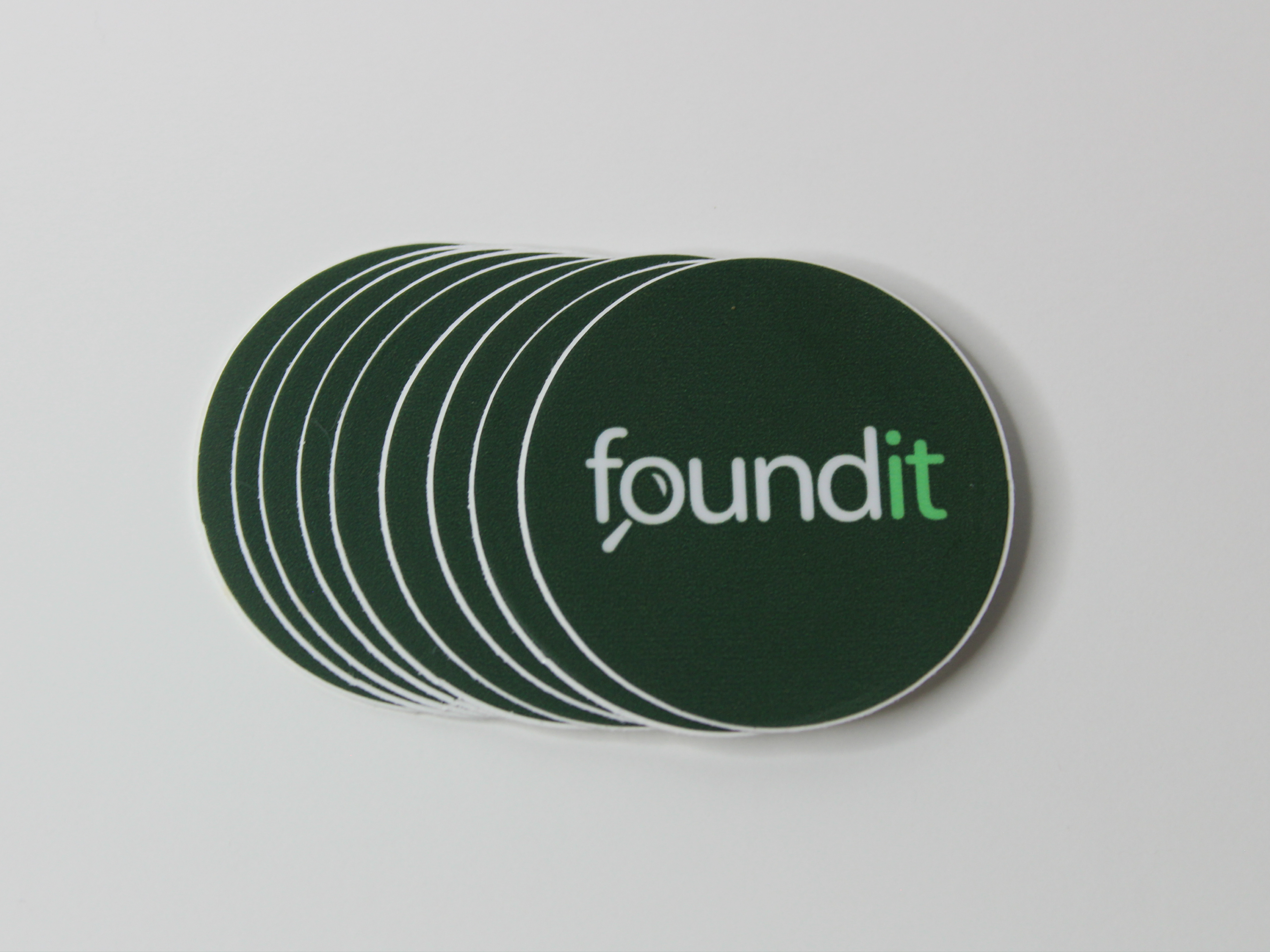 Produced printed sticker samples featuring the brand logo for use in product photography.